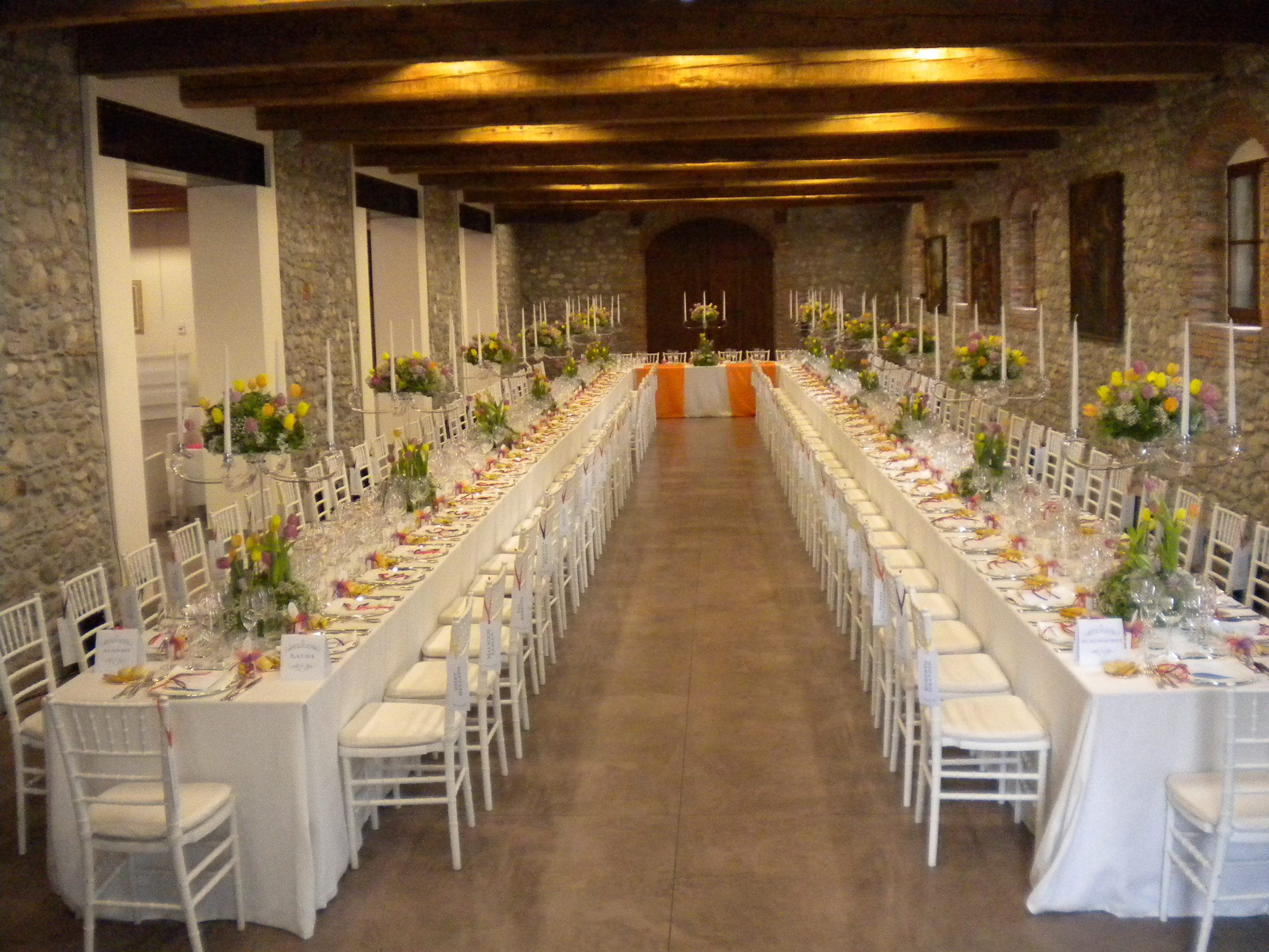 The room is situated on the first floor, is very bright thanks to the wide vault of the ceiling and the big windows. The capacity is 200 people.